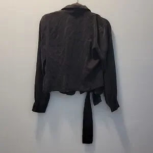 Bloomingdale's Black Satin Tie-Front Blazer Jacket