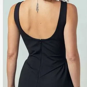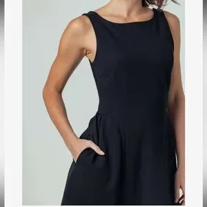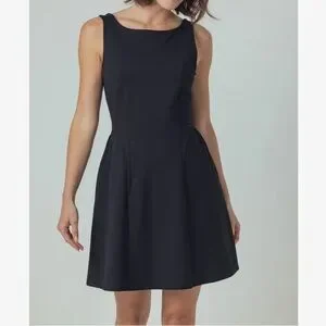 A timeless sleeveless fit-and-flare dress in black. Smooth bodice with subtle seaming creates a flattering waist and gentle skirt flare. Versatile design perfect for work or events. Easy to style and wear.