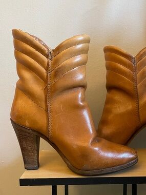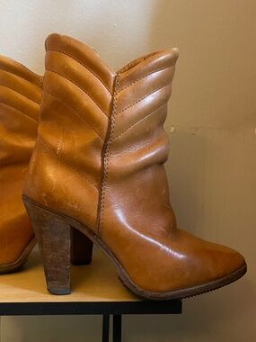 #VintageBoots #WesternAnkleBoots #CognacLeather #QuiltedDetail #StackedHeel #NarrowFit #EUC