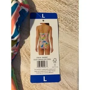 Hurley Womens One Piece Swimsuit Large Graphic Leaf Citron Cutout UPF 50+ NEW