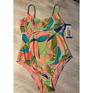 Embrace vibrant summer vibes with this Hurley one-piece swimsuit featuring a bold Graphic Leaf Citron print. This stylish swimwear offers a modern silhouette with a front cutout detail and adjustable spaghetti straps for a personalized fit. Built for sun-filled days, it includes UPF 50+ protection and a fully lined interior for comfort and coverage. The tropical botanical pattern in shades of coral, teal, and lime green makes it a standout choice for the beach or pool.