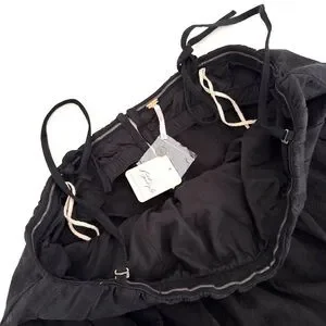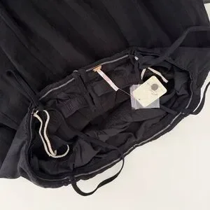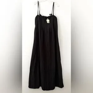 This maxi dress from free-est collection features removable tie straps, pleating at the bust, and a built-in shelf bra. It has a shapeless, billowy tube silhouette.