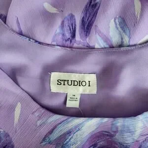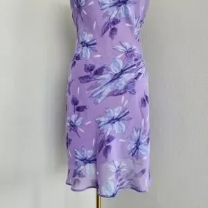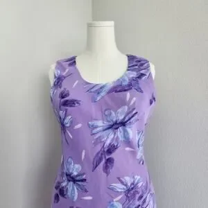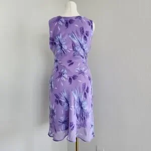 Vintage 90s Studio I Lilac Purple Floral Sheer Overlay Sleeveless Midi Dress L