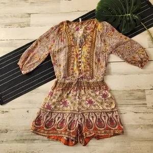 Spell Blossom Bohemian Floral Romper Orange Yellow Size Small