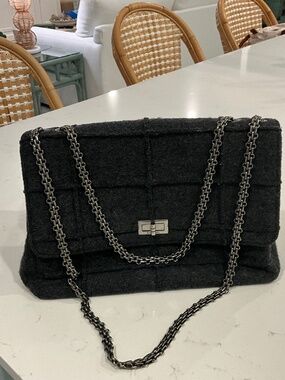 Elevate your style with this timeless gray flannel Chanel Bag- classic elegance meets everyday versatility. This piece adds to any outfit, from casual to evening.