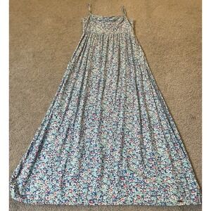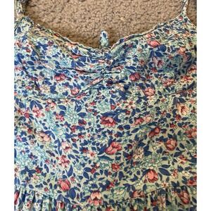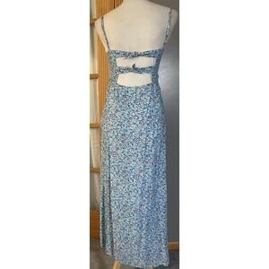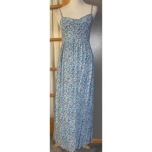 Y2K Hollister Floral Maxi Dress XS Tie Back High Slits Blue Boho Cottagecore