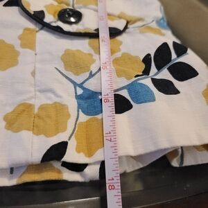 EUC. fitted jacket with 3 button front closure; button close hop pockets and defined lapel collar with piping. professional casual when paired with jeans and heels. size XS...see photos for measurements.