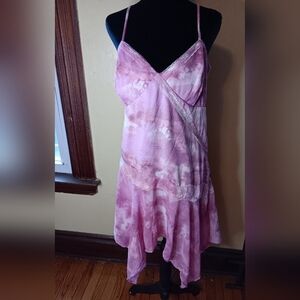 wild fable Pink Tie-Dye Asymmetrical Lace Slip Dress, Size L