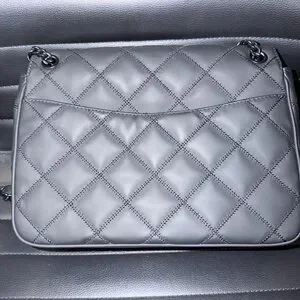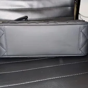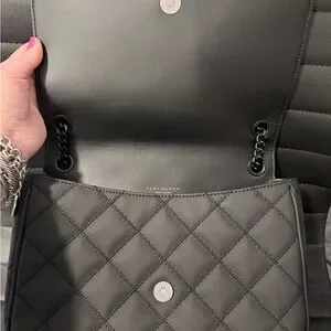 Tory Burch Willa Quilted Shoulder Bag in matte black, silver and black hardware