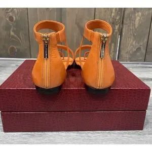 Tamara Mellon Stride Flat Gladiator Orange Patent Leather EU37.5 US7.5 $495