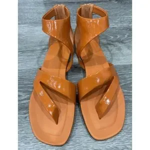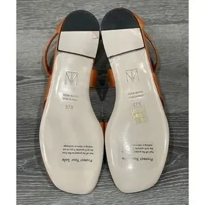 The Tamara Mellon Stride Flat Gladiator Orange Sandal in EU size 37.5 and US size 7.5 is a stylish and comfortable footwear option for women. Made from patent leather with a leather lining, this sandal features a solid orange color, zip closure, and flat heel style. Perfect for parties, cocktails, or casual wear, this gladiator-style sandal is designed for fashion-forward women looking for a versatile and trendy shoe option for the summer season. Made in Italy and part of the Tamara Mellon product line, this sandal combines quality craftsmanship with a bold and eye-catching design.