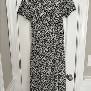 Levi's Black and White Floral V-Neck Midi Dress