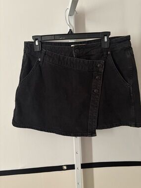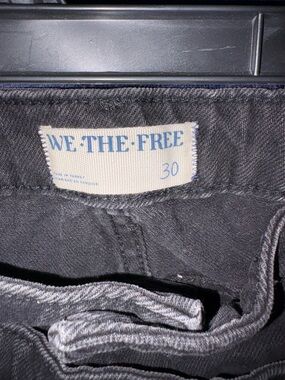 Black denim waistband with branded fabric label. Classic casual styling. Subtle stitched seams and belt loops.