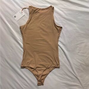 NWT Quince High Neck Tank Bodysuit Camel Nude M