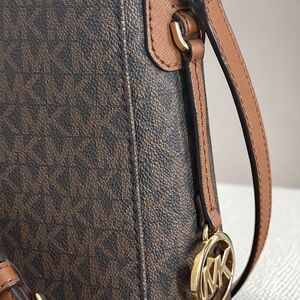 Michael Kors Brown MK Logo Crossbody Bag with Tan Leather Strap