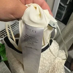 Gucci Sleeveless Cream Tweed Dress with Black Bow