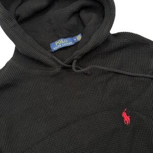 Polo Ralph Lauren Black Waffle Knit Hoodie Red Pony Logo Men's Medium Pullover
