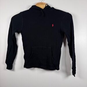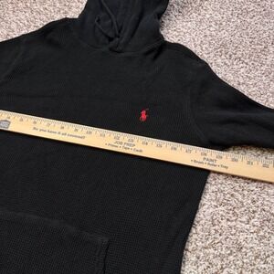 Keywords: Polo, Ralph Lauren, hoodie, waffle knit, red pony, black, men's, size medium, casual, loungewear, pullover, long sleeve