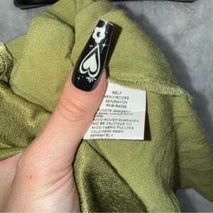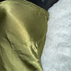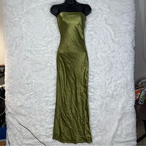 SNDYS x REVOLVE Angel Strapless Metallic Olive Green Satin Maxi Dress Rayon