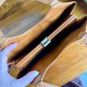 Vintage structured top handle handbag in a warm caramel/tan tone.