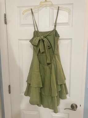 Halara Backless Adjustable Strap Tie Back Tiered Ruffle Flowy Slip Mini Dress