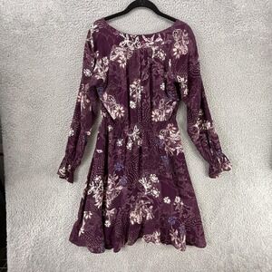 Maeve Dress Womens S Purple Fit & Flare Floral Puff Sleeve Smocked Ruffle