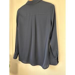 Vince. Stretch-Silk Button-Front Blouse Navy coastal blue Top / Blouse Size S