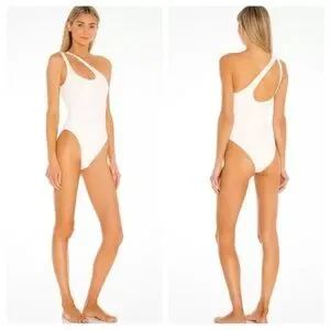 L*SPACE Phoebe Ribbed One Shoulder One Piece Swimsuit in White SZ 6 NWT