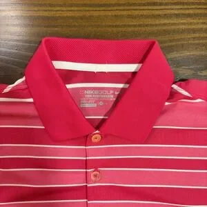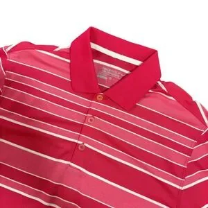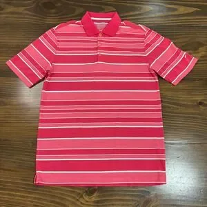 NIKE GOLF Mens Medium Pink Striped Dri Fit Polo Shirt Tour Performance