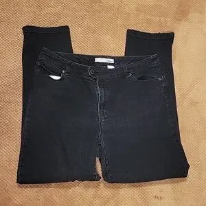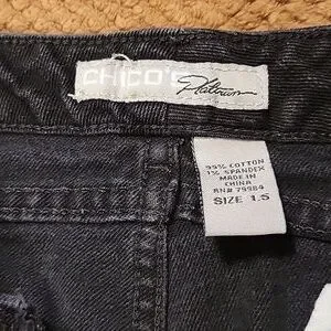 Black Chicos size 1.5 (women's 10) jeans with zippers at bottom of legs in good pre-owned condition