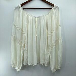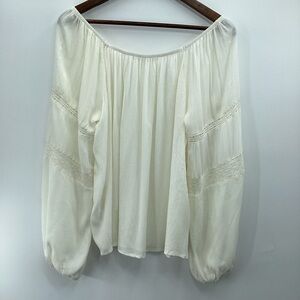 Jolt Cream Flowy Lace Trim Peasant Women's Blouse