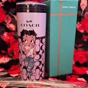 Betty Boop Coach Cartoon Design Skinny Tumbler Pink