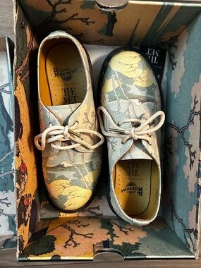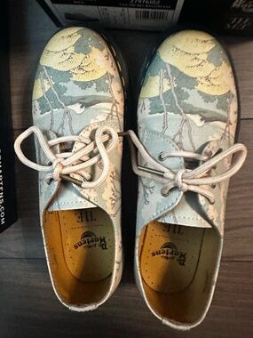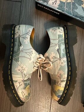 Our first collaboration with The Met is a tribute to the enduring energy and inspiration of the work of Katsushika Hokusai — with our Original Icons offering a new canvas. Art should be seen everywhere. And our boots and shoes have miles to go. The Met 1461 shoe is printed with ‘Fuji from Gotenyama at Shinagawa on the Tokaido, from Hokusai’s ‘36 Views of Mount Fuji’ series, and shows a crowd gathered for a picnic under the cherry blossom. The shoe has tonal laces with antique gold detailing and is finished with our signature yellow welt stitching.