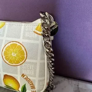 Steve Madden Lemon Print Shoulder Bag with Chain Accents and Coin Purse