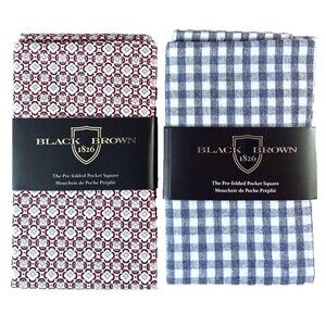 2-PK BLACK BROWN 1826 Pre-Folded Pocket Squares Red Celtic & Blk White Checkered