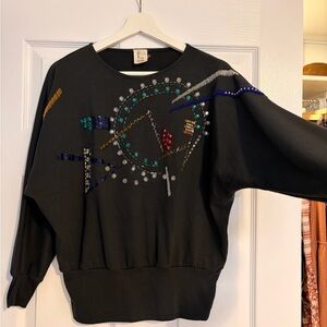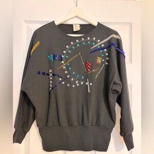 Alison Beaded Embellished Grey Sweatshirt vintage 80s blouse top disco retro m/l