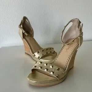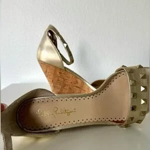 Lilly Pulitzer Gold Studded Wedge Sandals 8