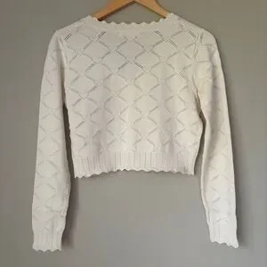 NWT LoveShackFancy Petra Knit Heart Argyle Cardigan Parchment Cream Ivory | S