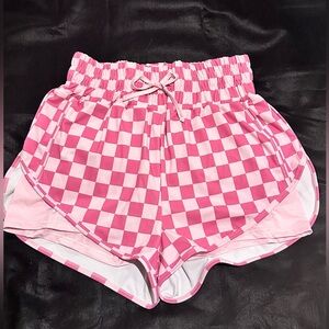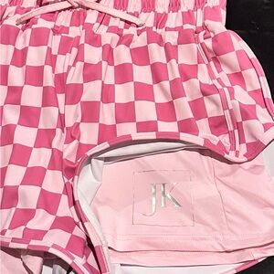 Jady K Pink Checkerboard Athletic Shorts with Drawstring
