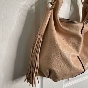G.I.L.I. Hobo Bag Pale Peach Ostrich Embossed Leather Hobo Bag with Tassel