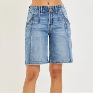 RISEN 2-Button Slouchy Bermuda Long Jean Shorts Pockets sz Large