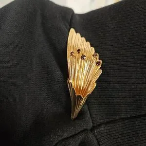60s boho whimsigoth gold tone purple stones brooch