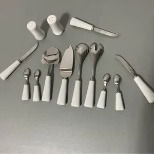 Christmas Tree Serving Utensils Salt Pepper Shakers Stainless Japan 13 P…