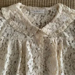 Doen Lenore Lace Collar Button Ruffle Short Sleeve Top Mother of Pearl Cream Tan