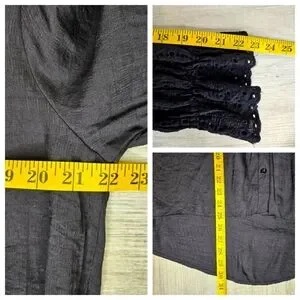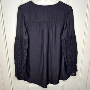 Women's Boho Charcoal Button Front Blouse Eyelet Bell Sleeves Medium Casual Chic