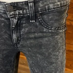 Skinny silhouette with an acid-wash finish. Stretch denim for a close fit. Classic five-pocket styling. Low-rise waist for a modern look.