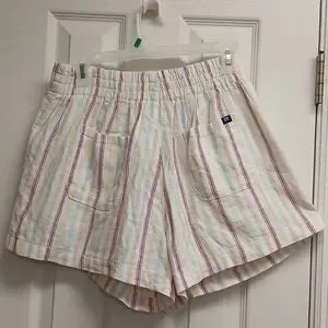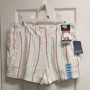 GAP Women's Striped Shorts Cream, Red, Blue And Yellow. Size S. NWT Linen Blend
