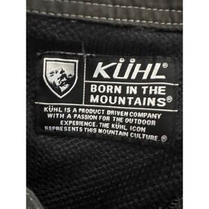 Kuhl hiking shorts in a versatile charcoal gray hue offer a durable and functional design for outdoor adventures. These technical shorts feature multiple pockets including front hand pockets, side cargo-style pockets, and back pockets for ample storage. Crafted with a focus on movement, the fabric provides a slight stretch while the reinforced stitching ensures longevity. A signature mountain logo patch and embroidered branding add a touch of rugged style to this practical trail-ready essential.