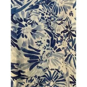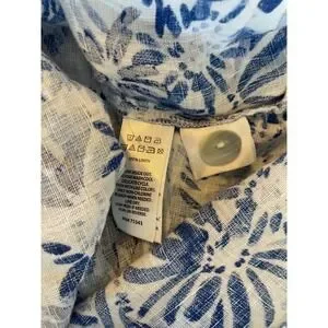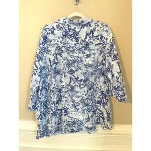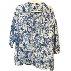 CYNTHIA ROWLEY Linen Size 2X Tunic Popover Top Blue White Flower Print Floral