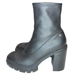 GUESS Black Chunky Lug Sole Side Zip Ankle Boots Size 9M EUC